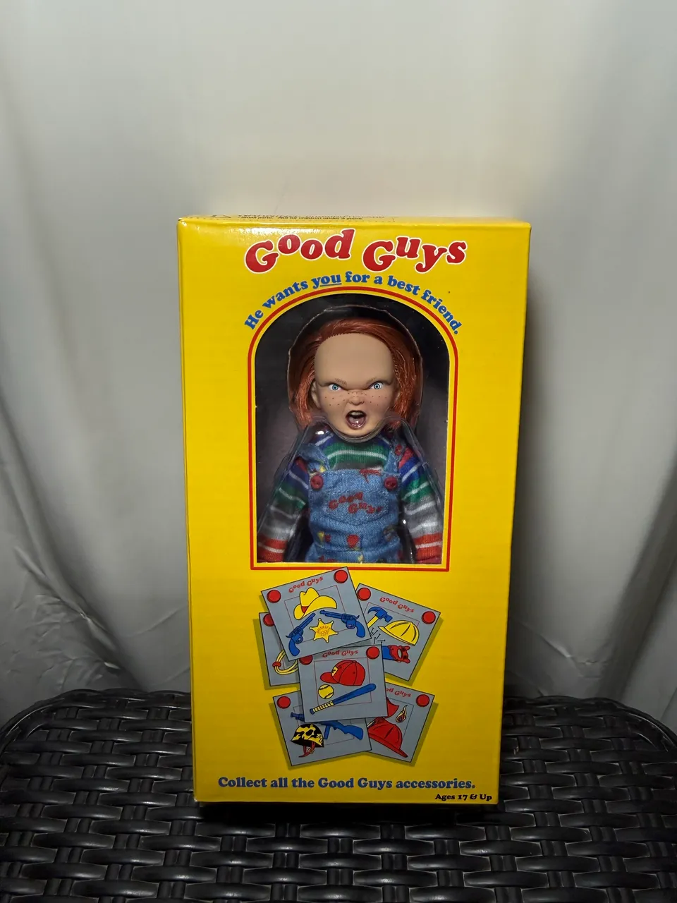 Reviva os momentos de terror com esse boneco icônico. Colecione todos os acessórios Good Guys! Novíssimo
