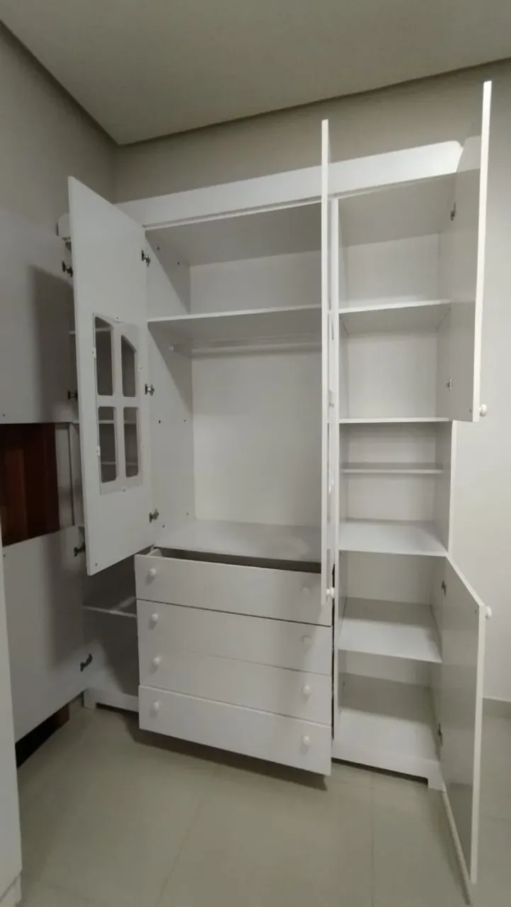 Lindo roupeiro infantil, ideal para organizar as roupinhas e acessórios do seu bebê. Design moderno e funcional, com amplo espaço interno e gavetas para maior praticidade. Perfeito para o quarto do seu filho! Está desmontado e Fazemos entrega. A montagem é por conta do comprador e precisa ter alguém pra ajudar a descarregar na hr da entrega.