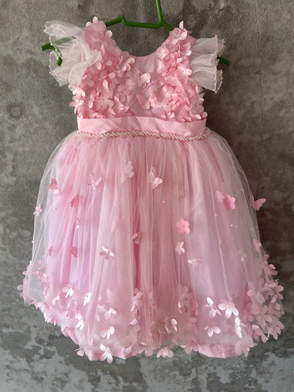 Encante com este vestido infantil rosa, perfeito para ocasiões especiais! Detalhes delicados de flores e borboletas adornam o tecido, criando um visual mágico e romântico. Ideal para princesas!