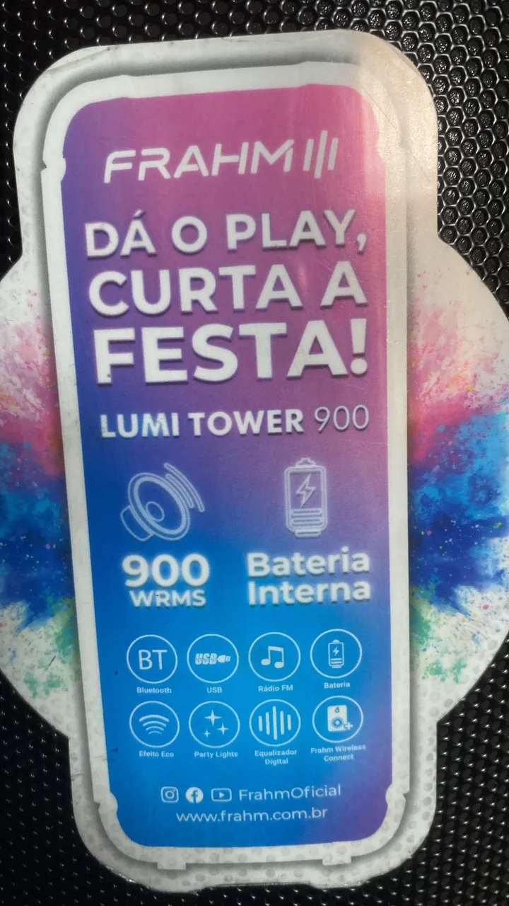 A Frahm Lumi Tower 900 é a caixa de som perfeita para animar suas festas! Com 900 WRMS de potência, Bluetooth, USB, rádio FM e bateria interna, ela oferece som de alta qualidade e praticidade. Conta com efeito eco e party lights para tornar a experiência ainda mais divertida!