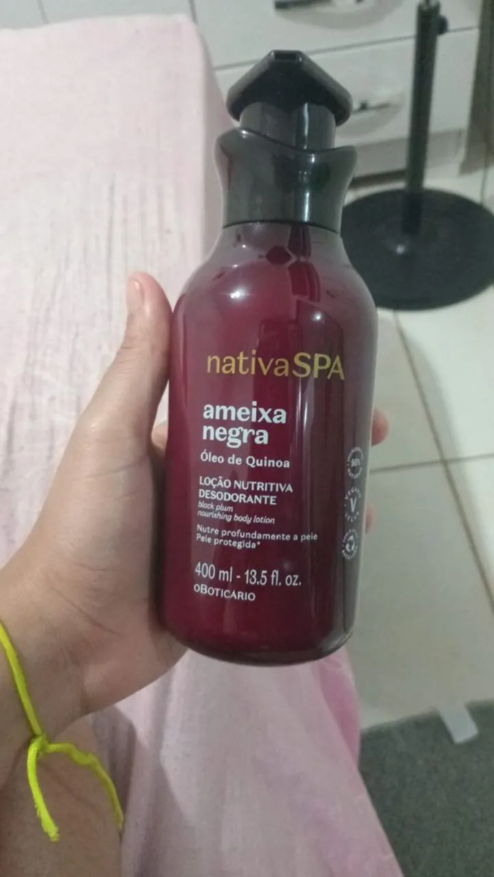 Experimente a Loção Nutritiva Desodorante Nativa SPA Ameixa Negra! Enriquecida com óleo de quinoa, nutre profundamente a pele, deixando-a macia e protegida. Sinta a deliciosa fragrância de ameixa negra que envolve você, proporcionando uma pele incrivelmente hidratada e perfumada.