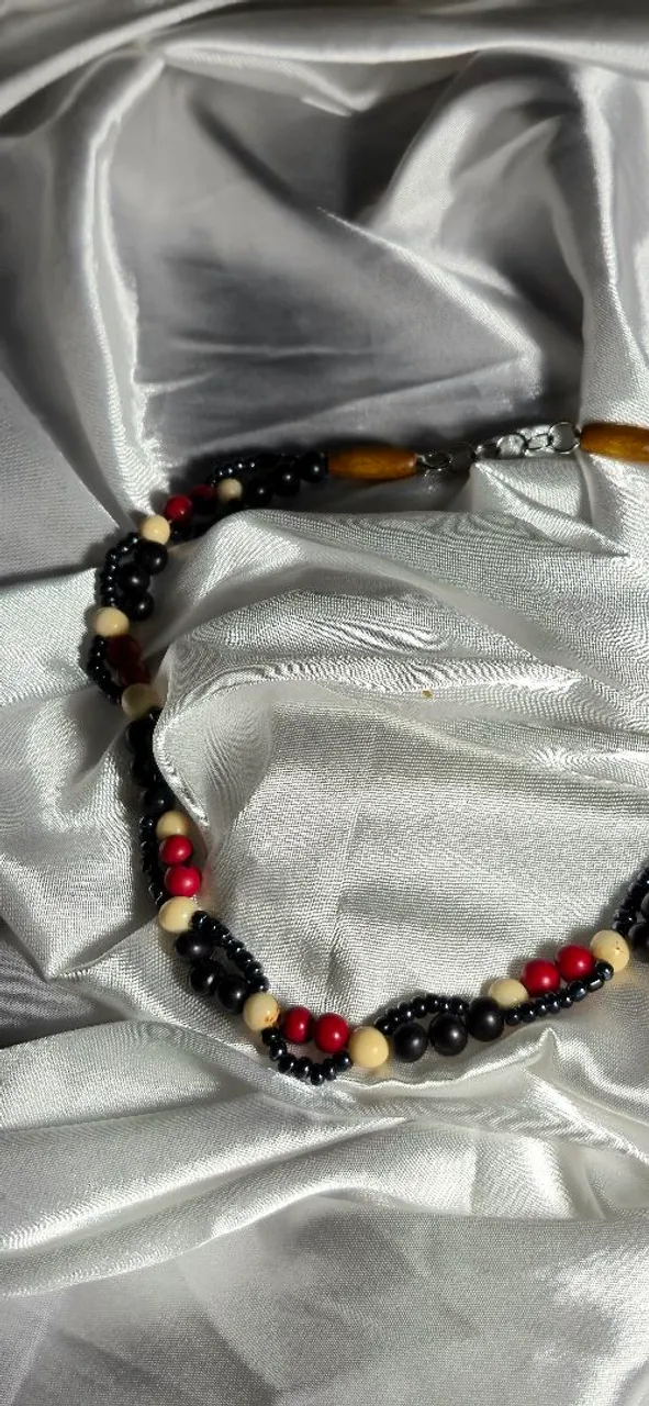 Colar borboleta castanha vermelha une o novo com as nossas sementes de açaí vermelhas, pretas e sua cor em natura, um acessório versátil e discreto que mostra sua força, combinando a força da natureza com um símbolo de transformação e renovação, este colar é a representação perfeita da sua jornada única