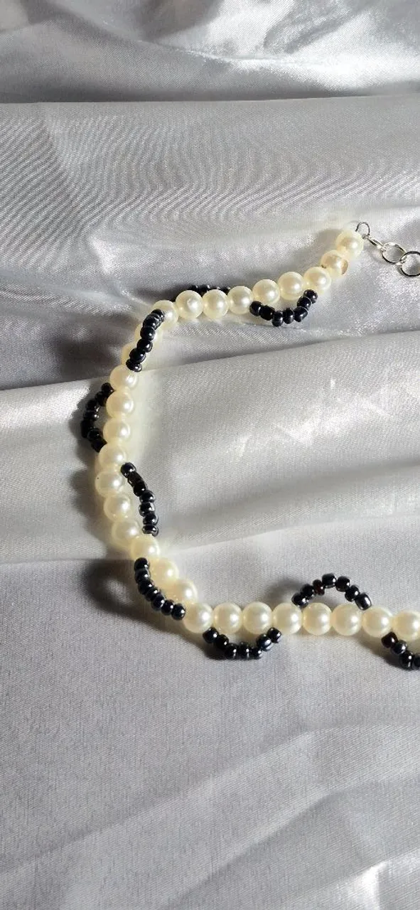 Elegância autêntica que atrai todos os olhares. Este colar único une a tradição das pérolas ao design moderno de miçangas de chumbo e um exclusivo pingente de Jarina preta. A peça perfeita para quem quer brilhar com personalidade e estilo inconfundível.