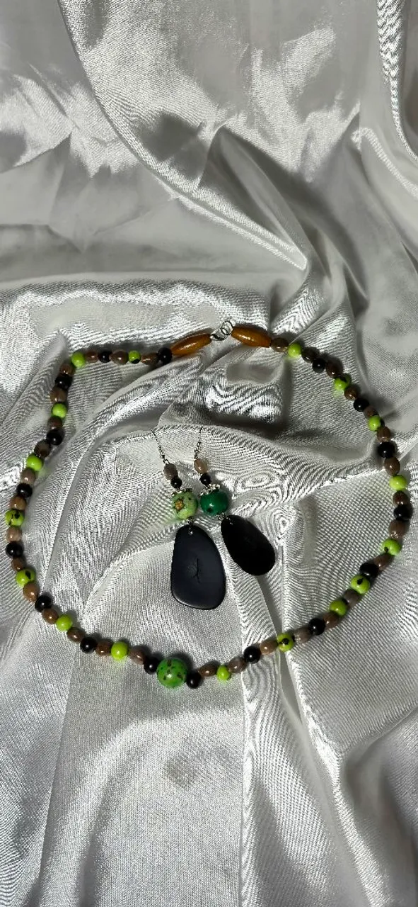 Lindo conjunto borboleta Malaquita,feito a partir de sementes lágrimas de nossa senhora, Jarina brasileira verde e sementes de açaí tingidas de verde,ideal para quem busca estilo e sofisticação. Adicione um toque de elegância ao seu visual com esta peça única e charmosa.