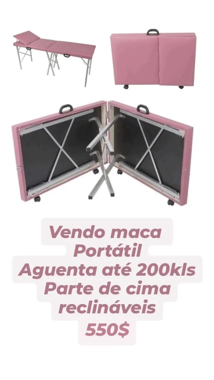 Maca estética portátil, ideal para diversos procedimentos. Suporta até 200kg e possui parte de cima reclinável.