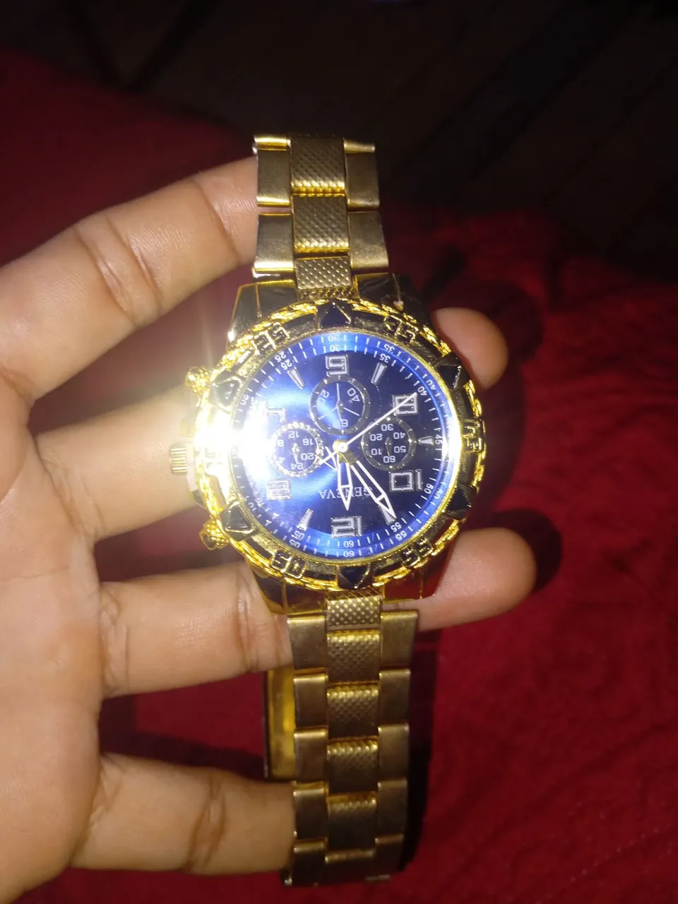 Relógio Geneva, design elegante e moderno, perfeito para complementar seu estilo. Com mostrador azul e detalhes em dourado, este relógio é um acessório sofisticado e atemporal.
