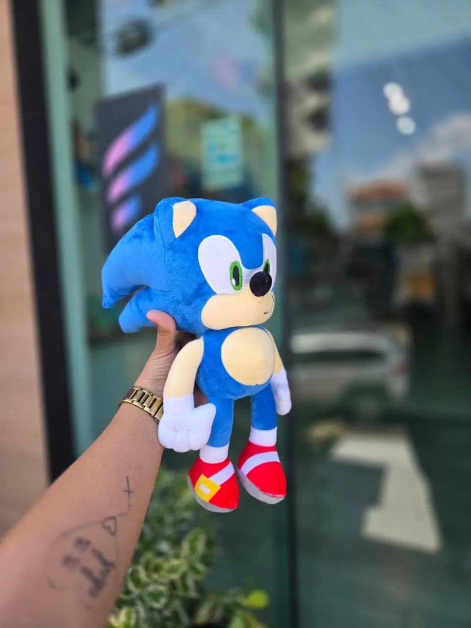 Prepare-se para a aventura com o Sonic de pelúcia! Perfeito para fãs de todas as idades, este adorável personagem traz a energia e a diversão do mundo dos games para perto de você. Leve o Sonic para casa e deixe a diversão começar!