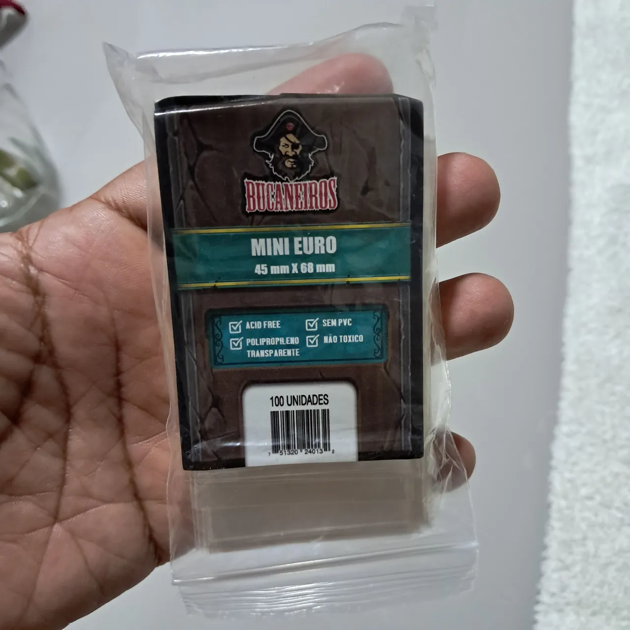 Shield (protetores) para cards tamanho 45 mm X 68 mm, 100 unidades, da marca BOCANEIROS. Nunca utilizados pois comprei do tamanho errado.