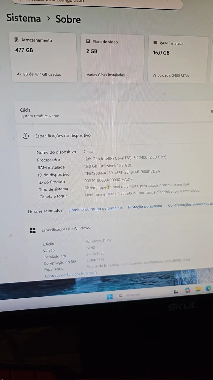 Computador ideal para trabalho, estudos, programação e jogos, com ótimo desempenho e sistema atualizado.