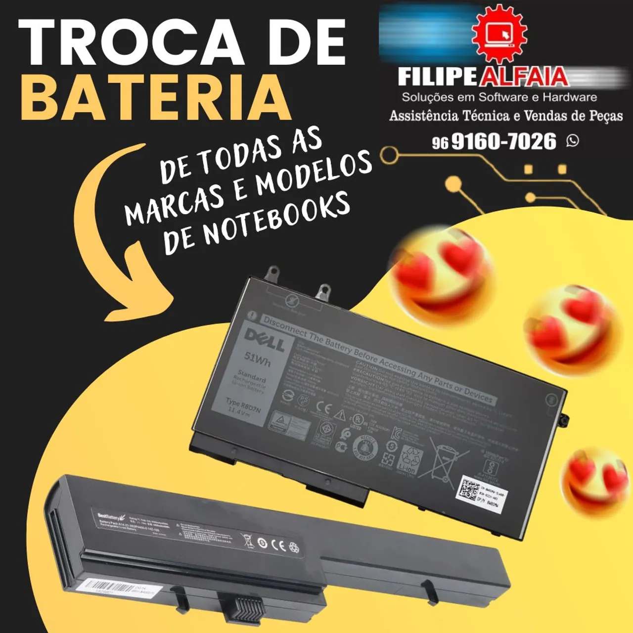 BATERIAS DE NOTEBOOKS - TODAS AS MARCAS E MODELOS! INTERNAS E EXTERNAS!