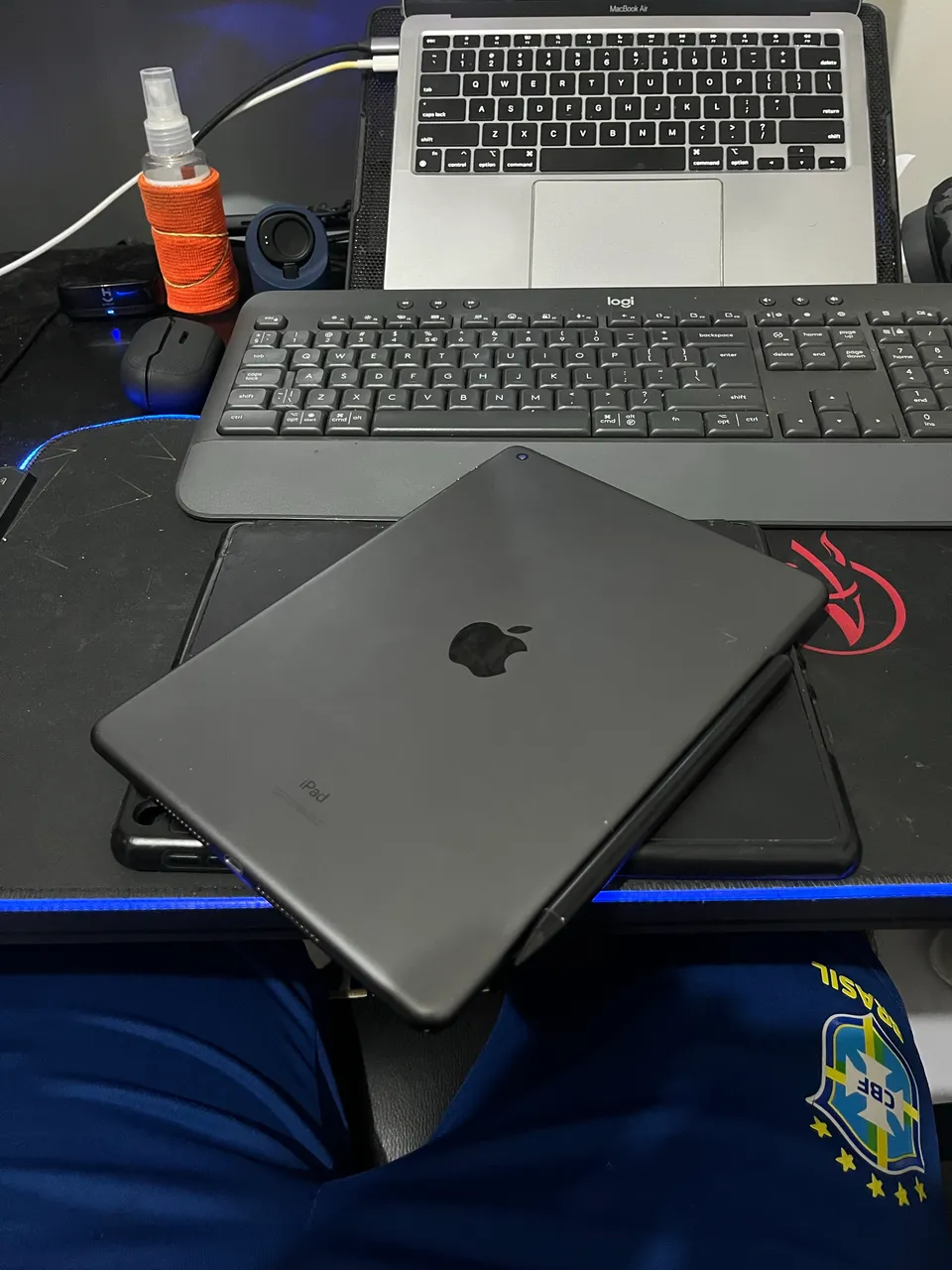 iPad 9 64 gb + caneta 20 hrs bateria: R$1800. Marcas de uso levíssimas na traseira e bateria íntegra. Motivo de venda: sem uso.