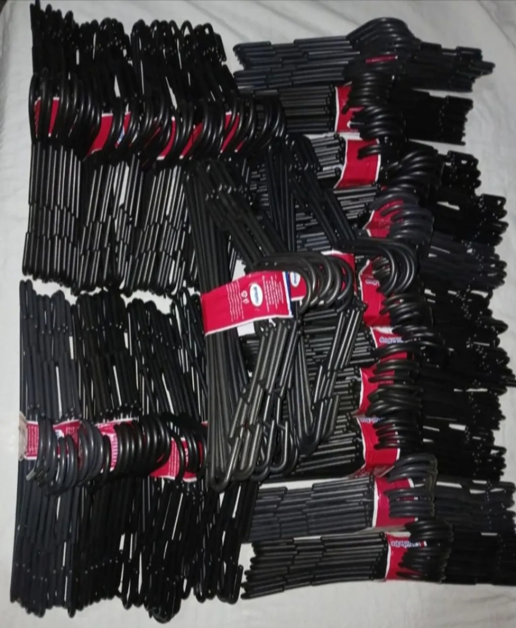 Cabides pretos resistentes, perfeitos para organizar suas roupas com praticidade e elegância. Ideal para otimizar espaço e manter seu guarda-roupa sempre em ordem!