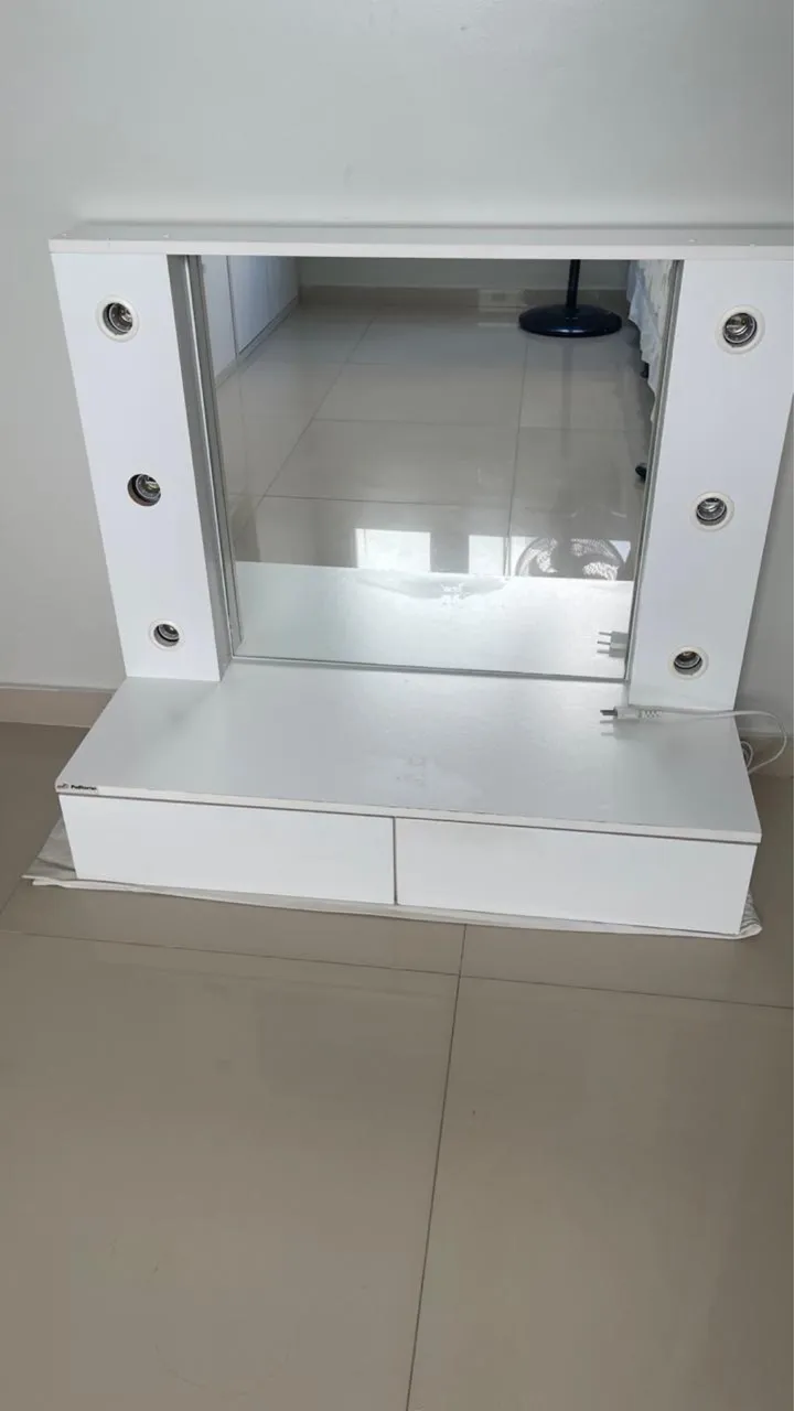 Linda penteadeira com design moderno e funcional, perfeita para organizar seus produtos de beleza. Possui gavetas espaçosas e iluminação embutida para facilitar a sua rotina. Ideal para quem busca praticidade e elegância no dia a dia.