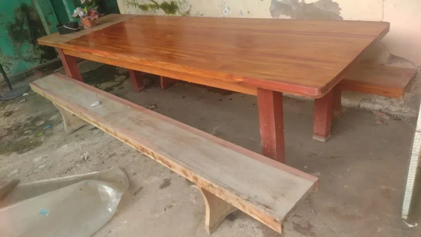 Linda mesa de macacaúba, perfeita para sua casa! Design rústico e elegante que combina com qualquer ambiente. Uma peça única para transformar sua sala de jantar.