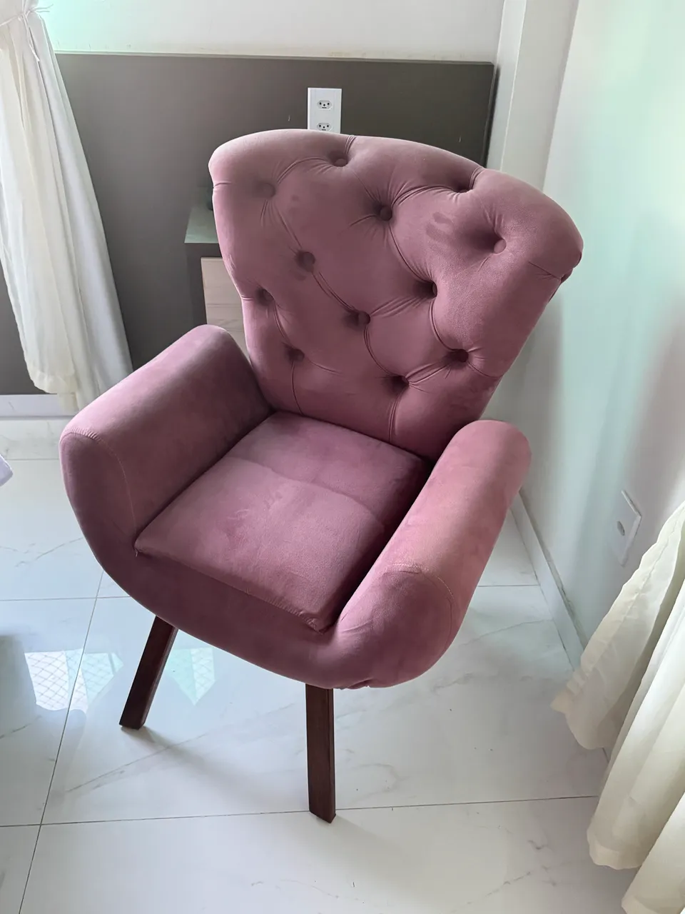 Linda poltrona para deixar sua sala ainda mais charmosa e aconchegante. Perfeita para relaxar e decorar seu ambiente com elegância e sofisticação.