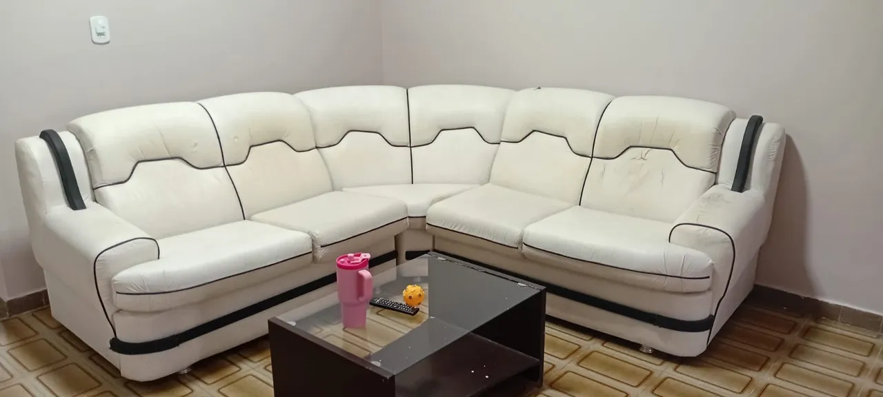 Sofá de canto espaçoso e confortável, perfeito para acomodar toda a família. Design moderno em courino, ideal para sua sala!