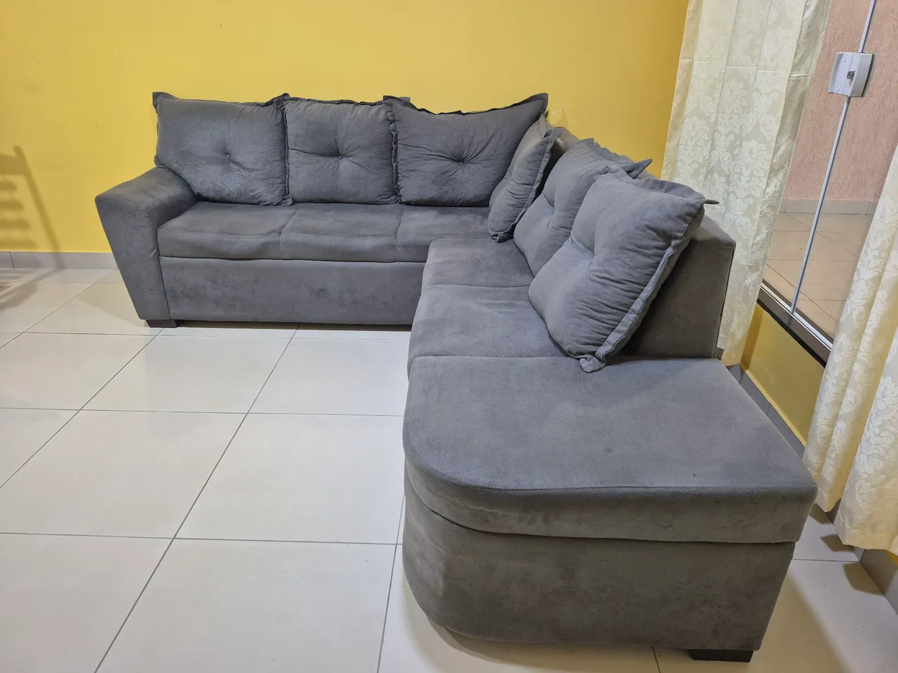 Sofá em L de Canto Cinza - 5 Lugares - Super Conservado