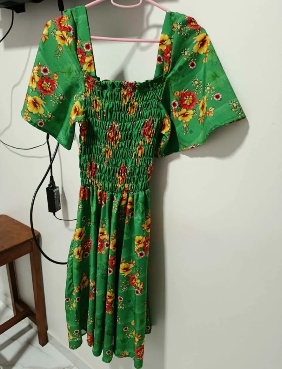 Vestido floral com látex, veste do M ao G Vestido azul escuro, veste do M ao G Saia preta, veste do M ao G Todos a 40,00