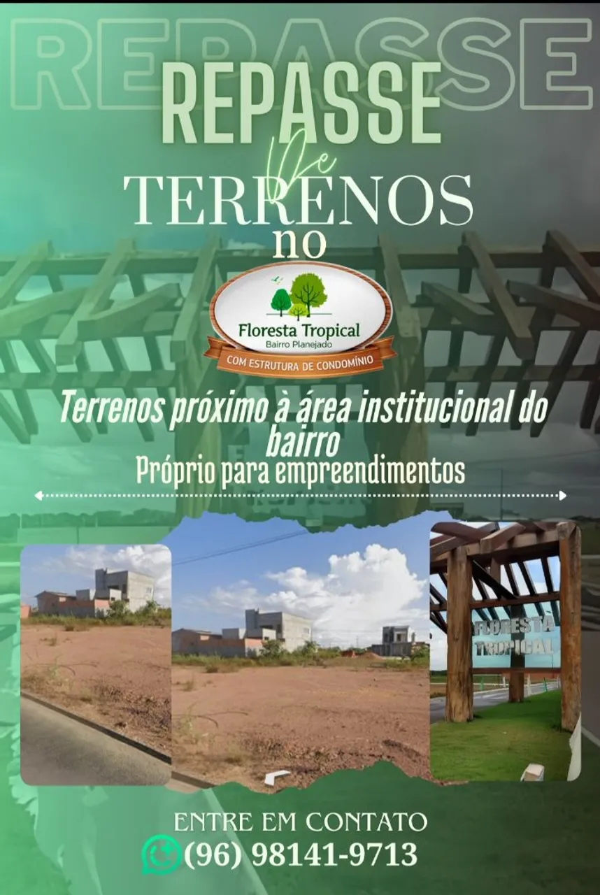 Nesses dias de insegurança, venha morar no bairro mais seguro da zona norte, onde existe um sistema de vigilância de alto nível. Repasso um terreno no Floresta Tropical, um bairro tranquilo com apenas 10 ruas, com poucos empreendimentos, portanto, excelente para empreender. Interessados envie mensagem para (96)... ver número.