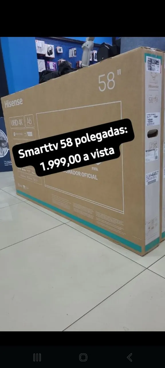 Smart TV Hisense 58 polegadas com resolução UHD 4K para uma experiência de imagem incrível. Desfrute de cores vibrantes e detalhes impressionantes em seus filmes e programas favoritos. Acompanhe a FIFA com alta qualidade!